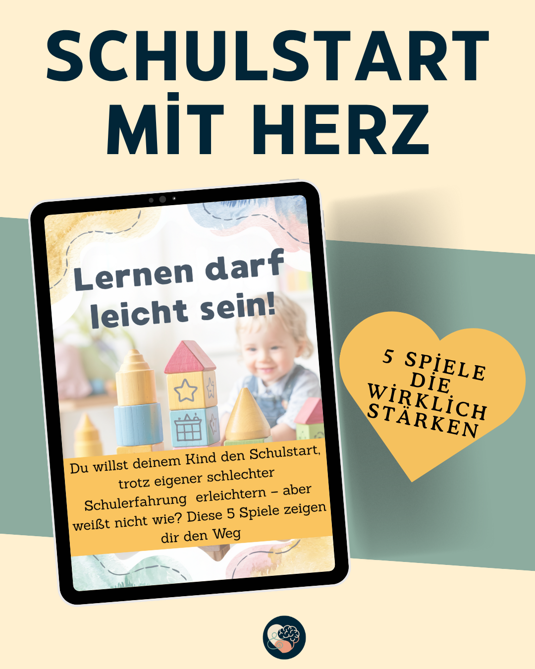 In meinem E-Book zeige ich dir 5 einfache Spielideen, mit denen dein Kind ganz spielerisch wichtige Grundfähigkeiten für die Schule trainiert -